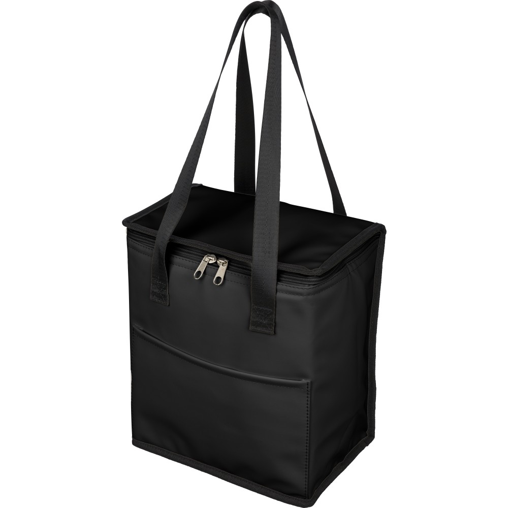 Újrahasznosított PU anyagból készült hűtőtáska 9 literes űrtartalommal, 210D újrahasznosított poliészter béléssel. 2,5 × 66 cm méretű hosszú fülekkel és elülső tárolózsebbel rendelkezik. A belső címkén újrahasznosított alapanyagra utaló logó található.