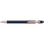 Alumínium golyóstoll rózsaarany részletekkel és érintővel, kék tollbetéttel.