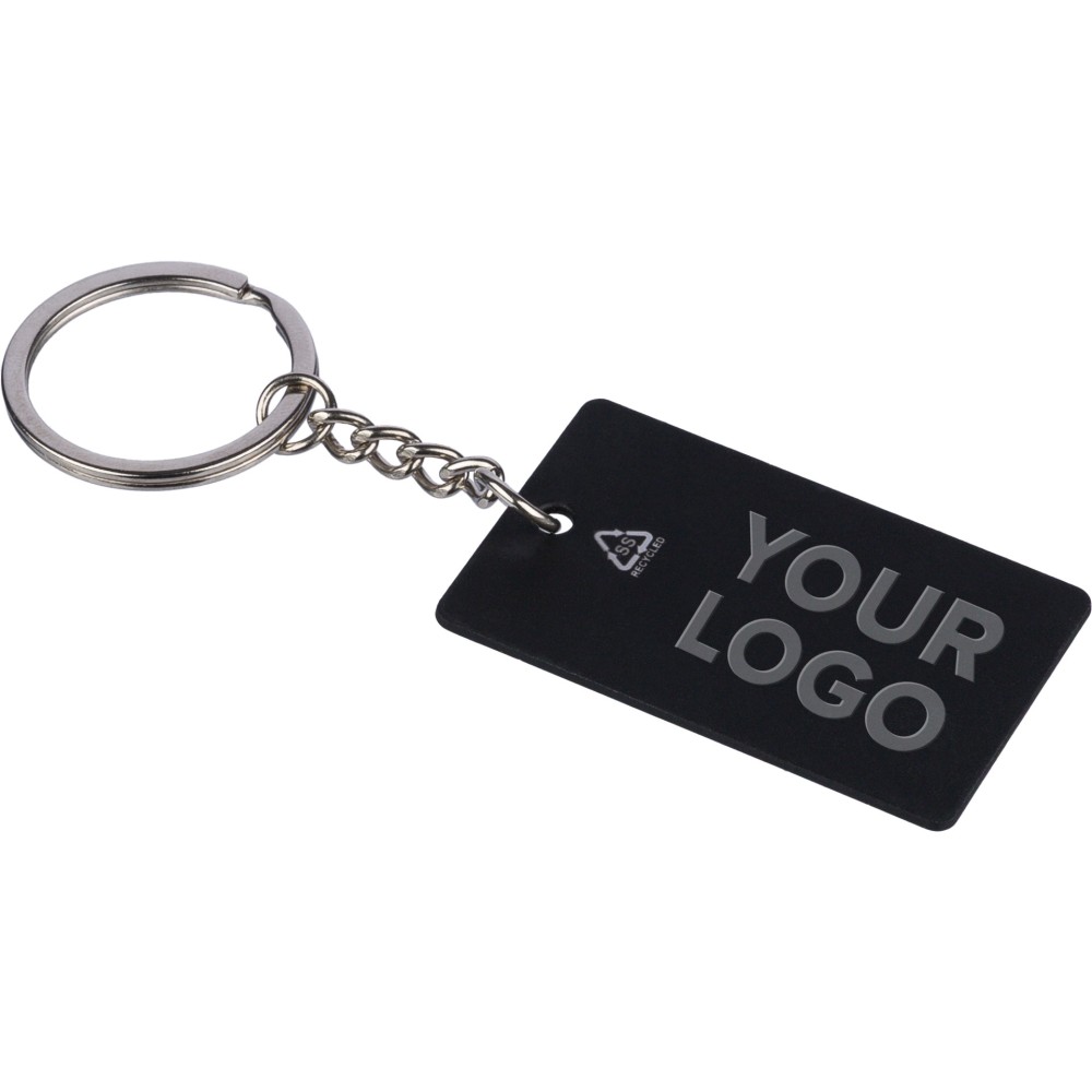 Újraacél négyszög kulcstartó, fekete