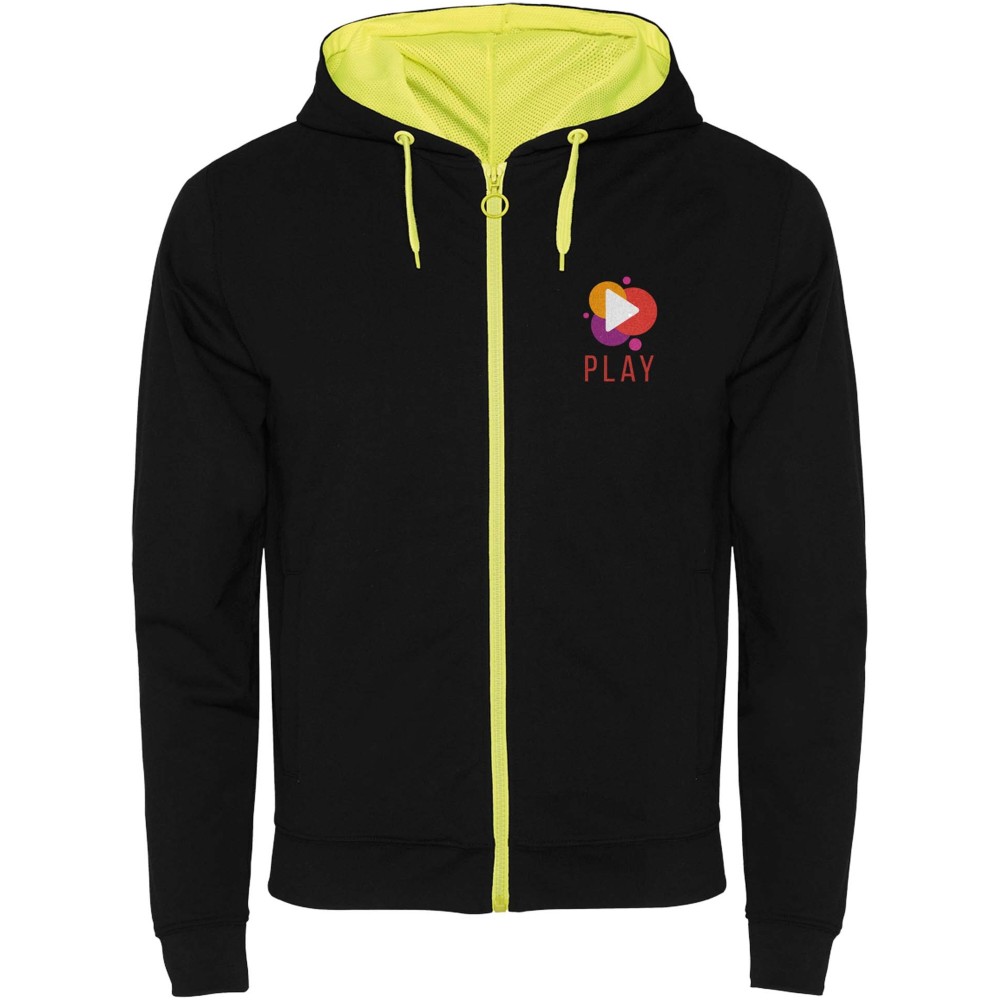 Roly Fuji uniszex cipzáros pulóver, Black, Fluor Yellow